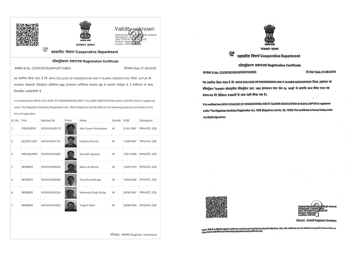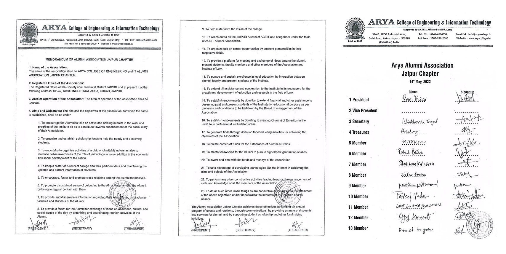 Arya alumni association has been functioning since 2016 at the college, which opened new avenue for growth, development and a strong bonding with the institutions. Arya alumni association members list are as follows: