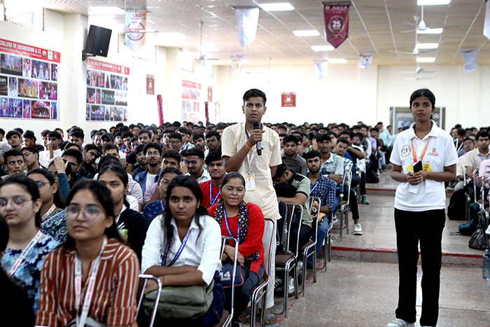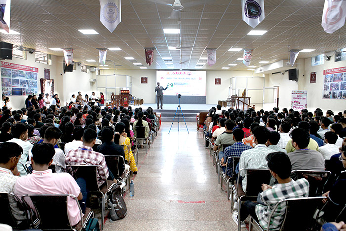 Addressing the first-year B.Tech students, he emphasized the importance of perseverance, hard work, and clarity of vision in achieving success, regardless of the field one chooses. He encouraged students to remain focused on their goals, while also cultivating values of integrity, responsibility, and leadership—qualities that help in both professional and personal growth.