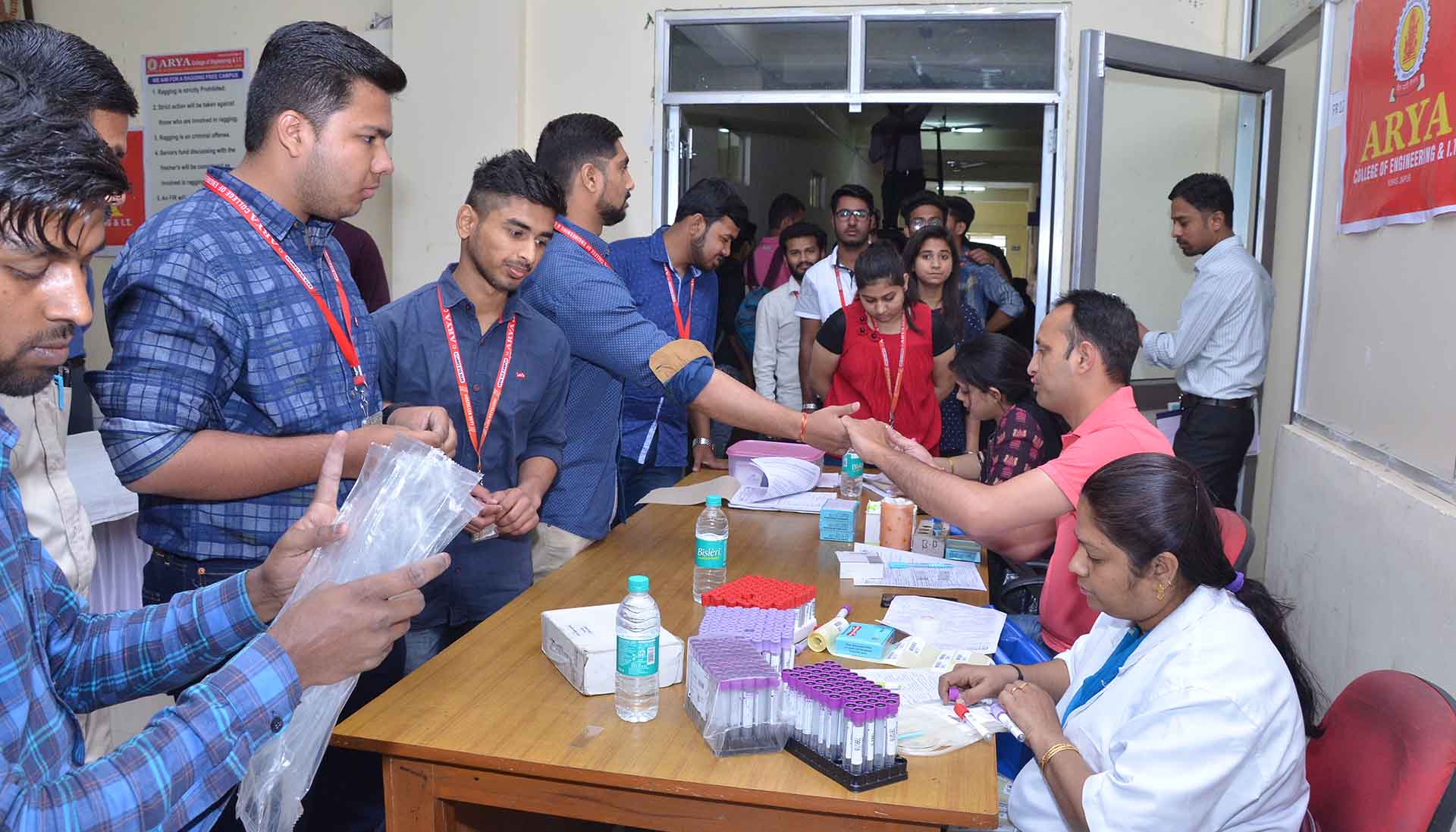 Arya College believes that one blood donation or contribution can save up to 3 lives. It will inculcate a sone of responsibility among students towards society. This Camp is not only focused on students, but Staff and other team members will also participate and motivate their families and students to do the same for the needy people. Before the start of the Blood Donation Camp, the Doctors at the Campus will check the health condition of the do the nor and tell them whether they are eligible for Donating Blood or not. There will be the number of banners and Posters at the Donation area for the motivation of the students or Blood Donors.