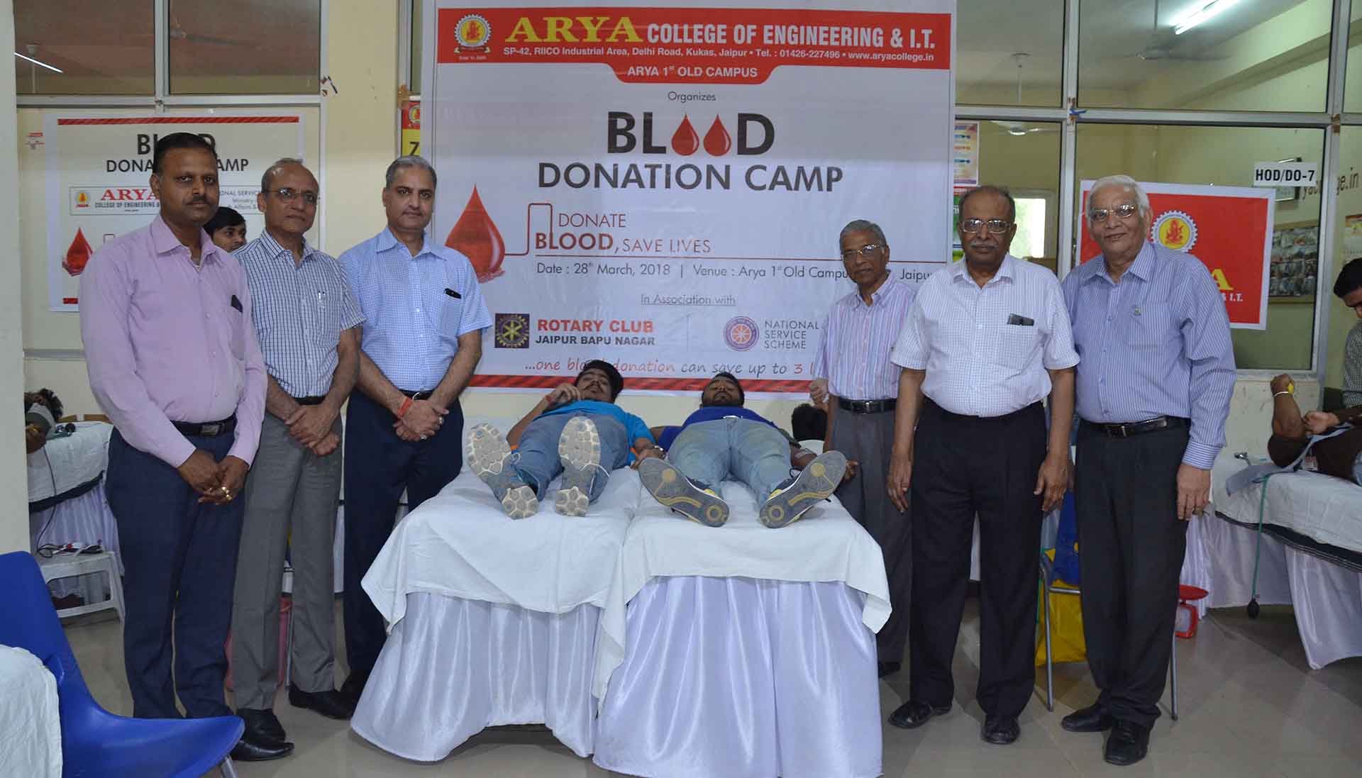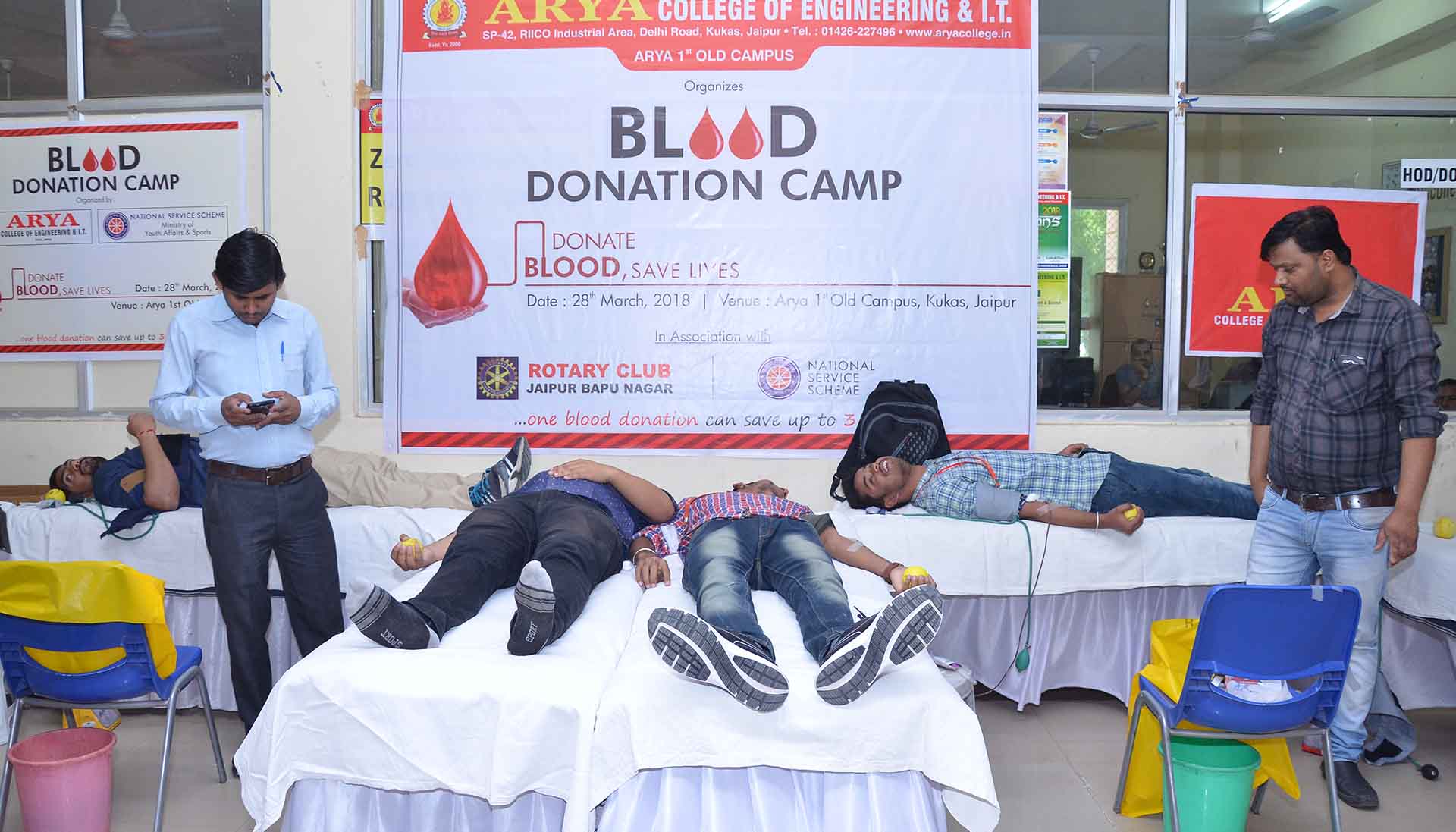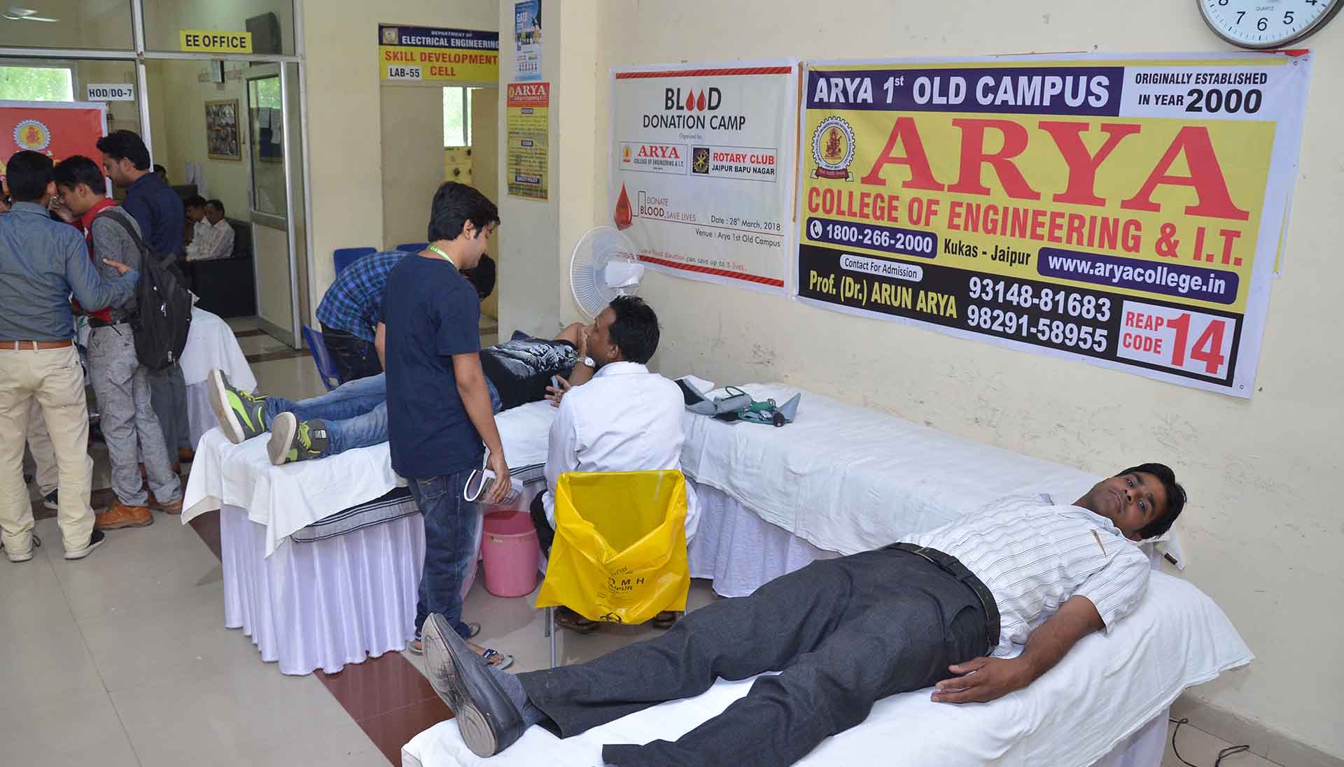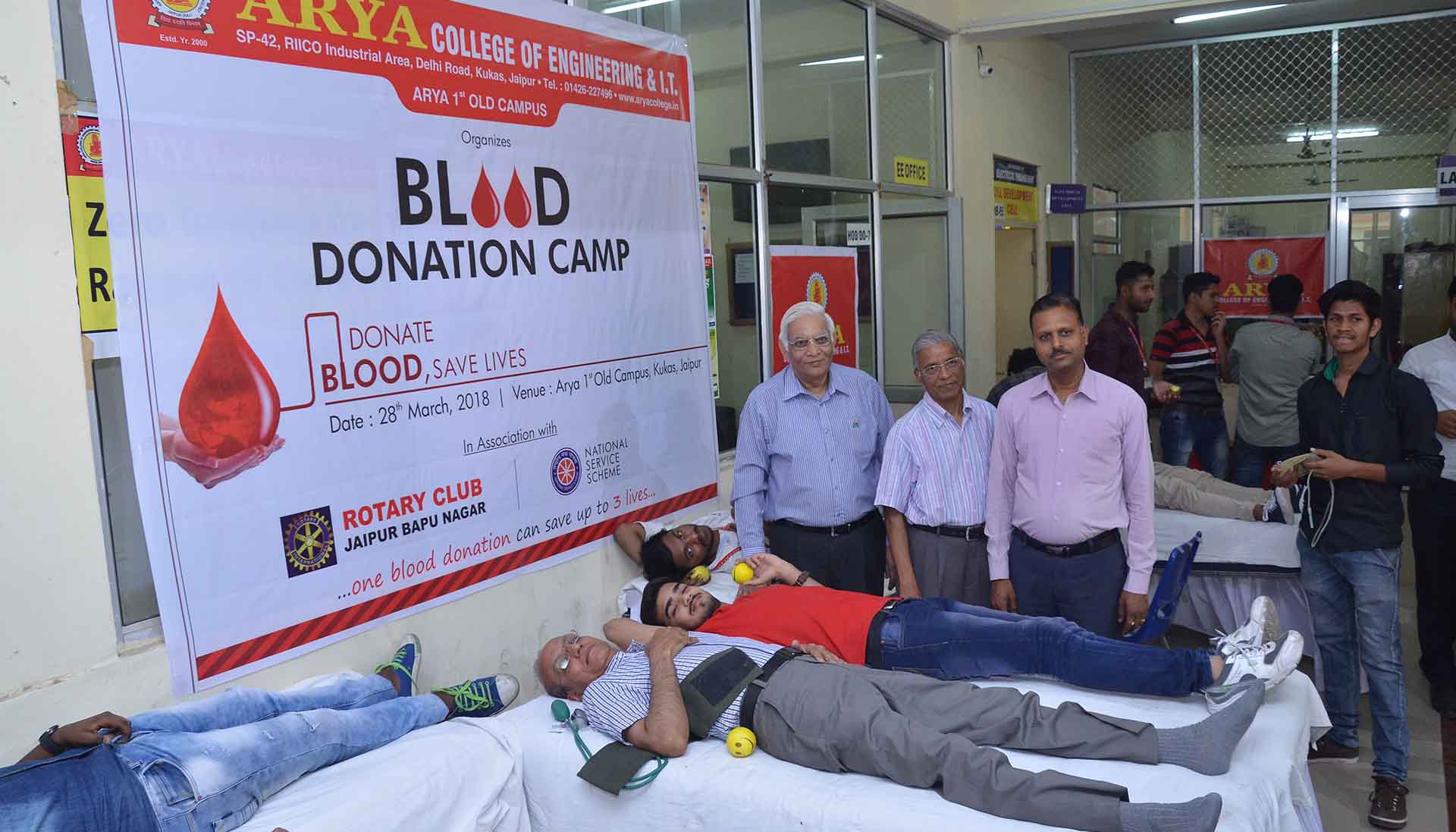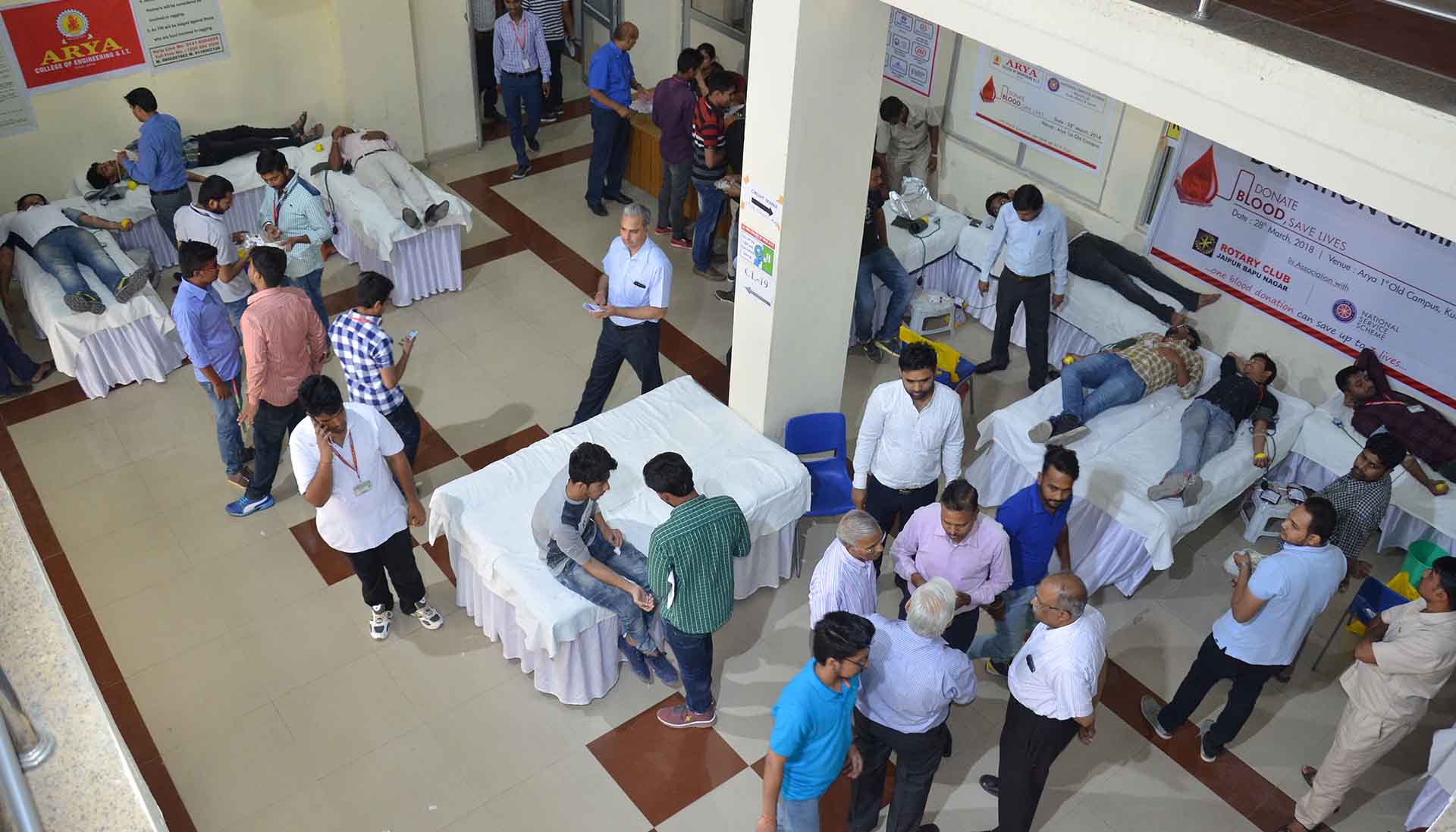The most significant and essential contribution of the human being is considered as blood Donation. A blood Donor always receives huge respect for the society as well as for the whole nation. To find the factors affecting the knowledge and practice of blood donation among the college students and their attitude towards the same, Arya College of Engineering and IT is going to organize Blood Donation Camp on 28th March 2018 at Arya 1st Old Campus in association with Rotary Club and National service Scheme. This year, it is promoted as “Donate Blood, Save Lives”.