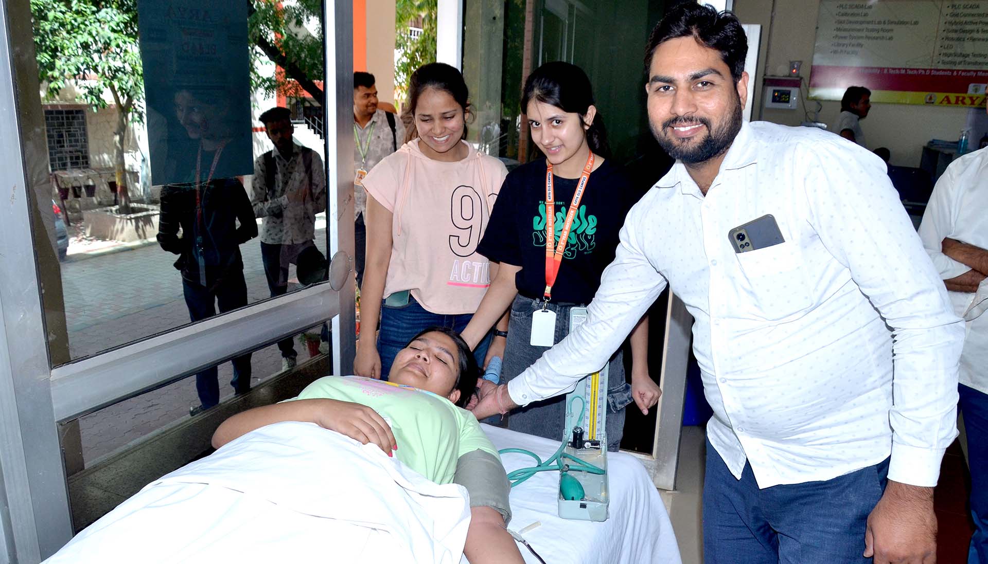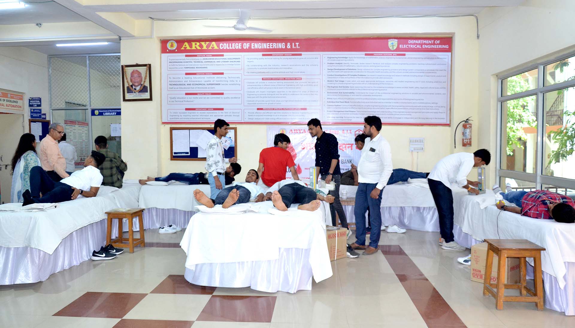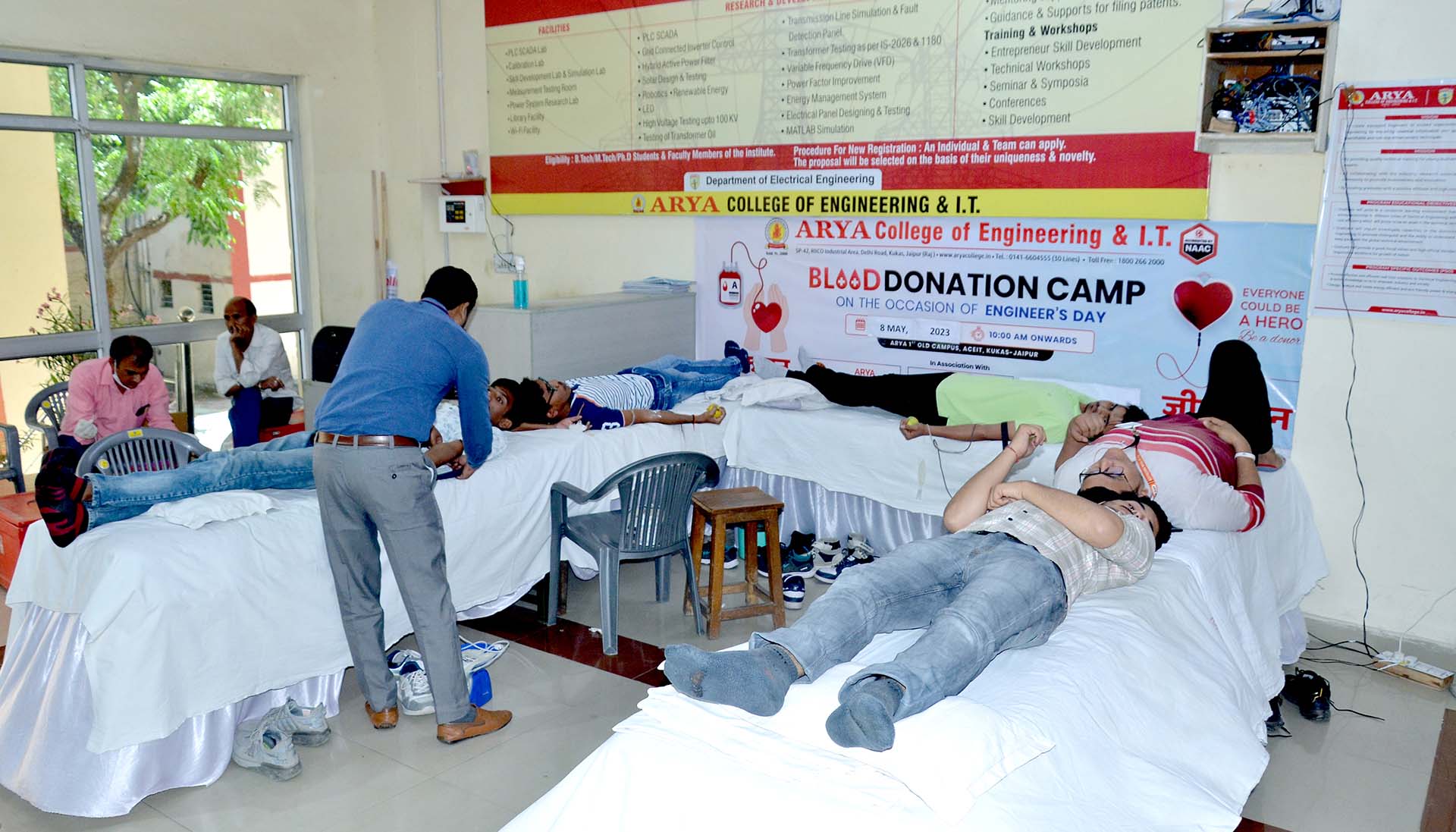 On World Thalassemia Day, May 8, 2023, Arya College of Engineering & IT, Jaipur organized a Blood Donation Camp at Arya 1st Old Campus. A dedicated team of doctors, nurses, and technicians from SMS Blood Bank supported the event, ensuring its smooth execution. Around 200 students, faculty members, and staff enthusiastically participated, donating blood to help save lives. The event highlighted the importance of blood donation, with students showing great enthusiasm in making a meaningful impact. Arya 1st Old Campus extends heartfelt gratitude to all donors, whose contributions will make a significant difference in the lives of many patients.