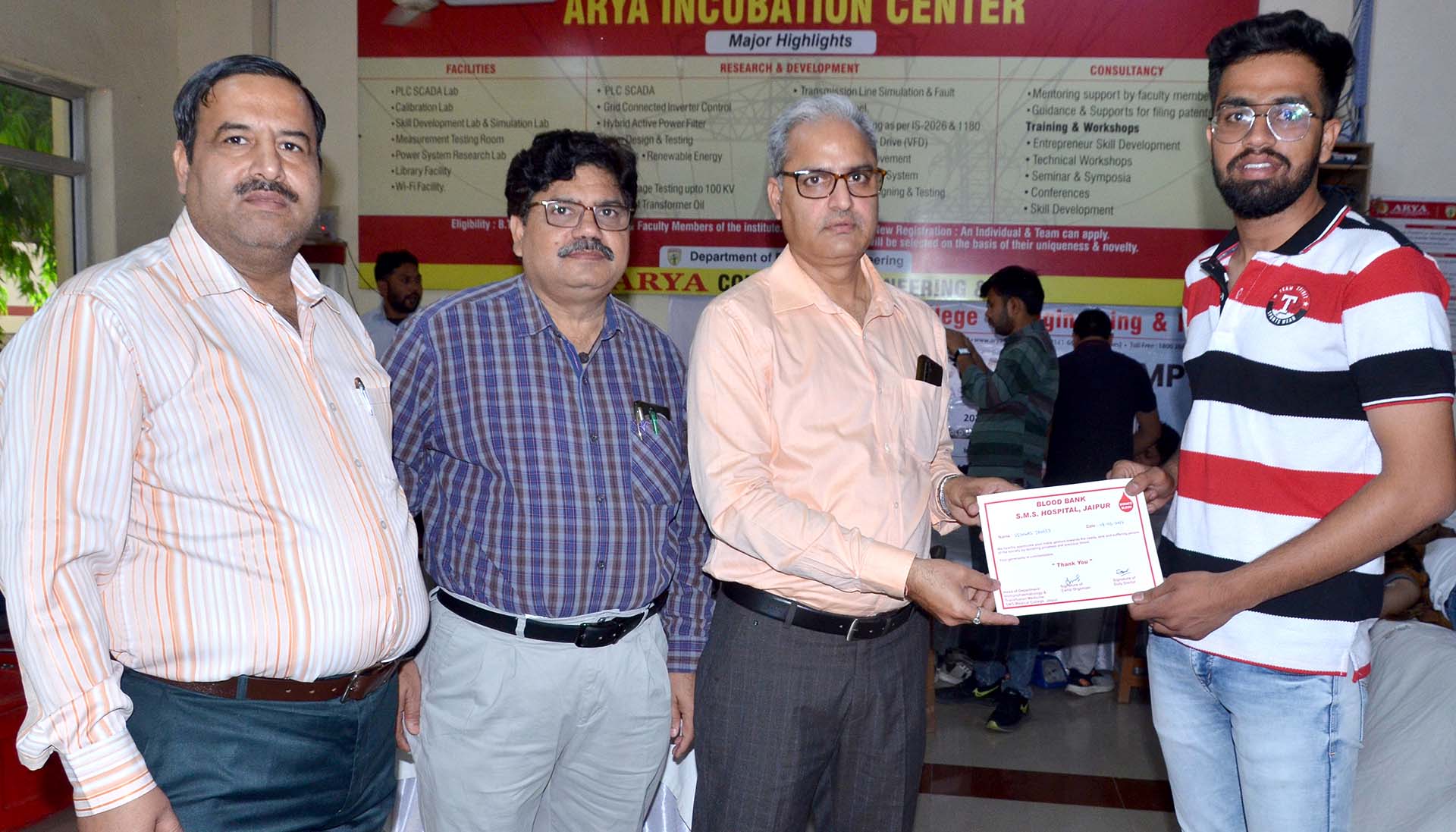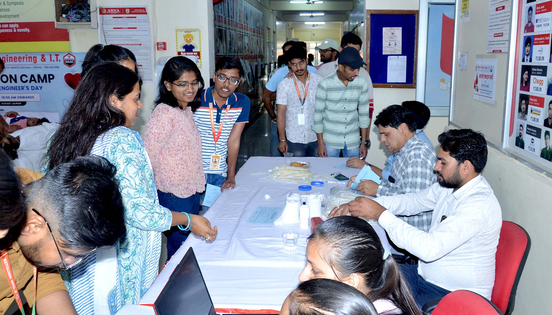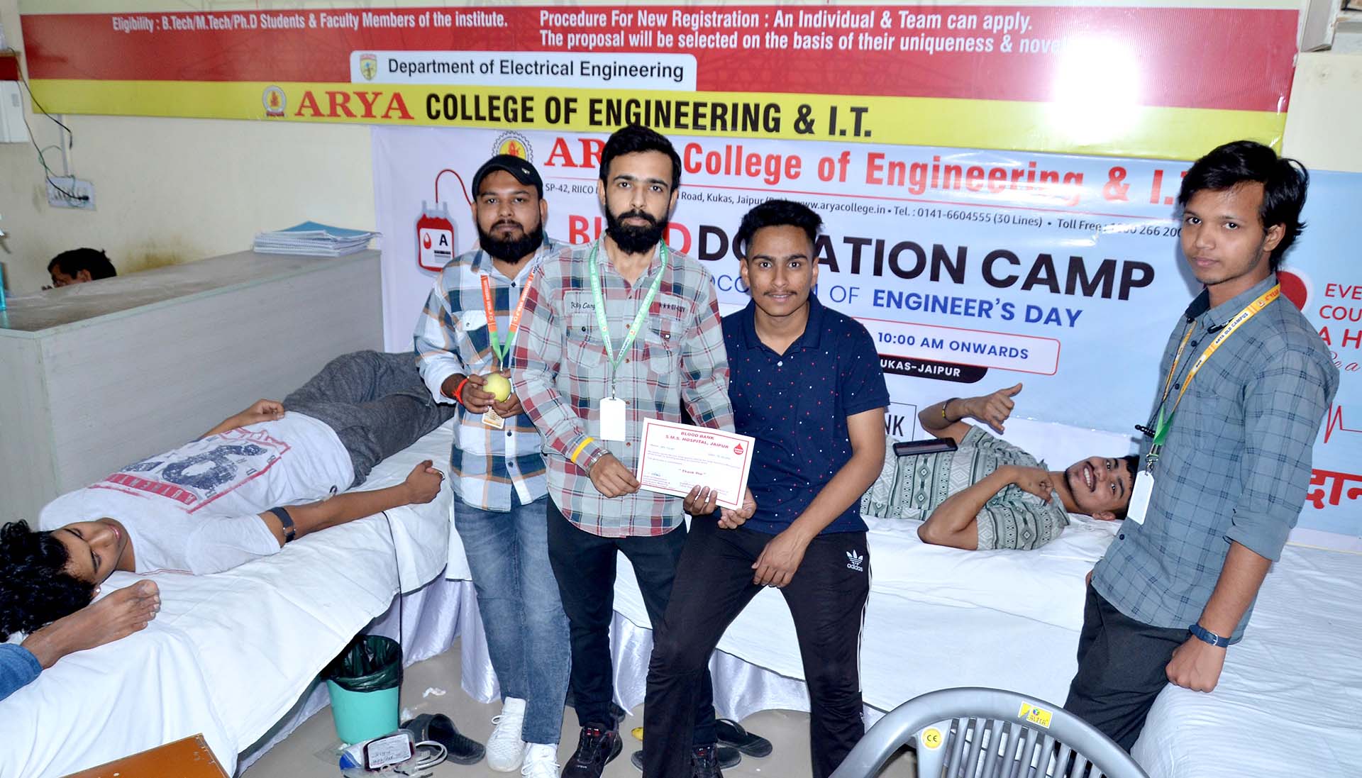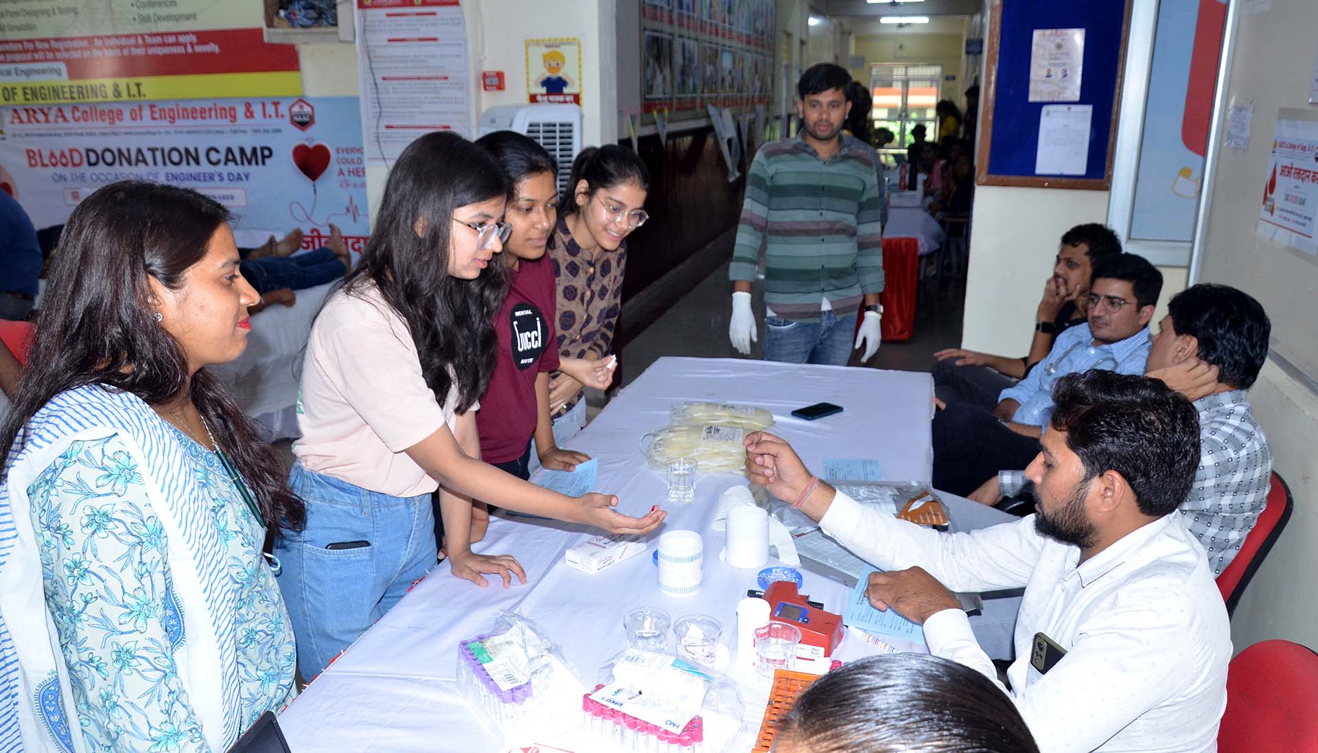 On World Thalassemia Day, May 8, 2023, Arya College of Engineering & IT, Jaipur organized a Blood Donation Camp at Arya 1st Old Campus. A dedicated team of doctors, nurses, and technicians from SMS Blood Bank supported the event, ensuring its smooth execution. Around 200 students, faculty members, and staff enthusiastically participated, donating blood to help save lives. The event highlighted the importance of blood donation, with students showing great enthusiasm in making a meaningful impact. Arya 1st Old Campus extends heartfelt gratitude to all donors, whose contributions will make a significant difference in the lives of many patients.