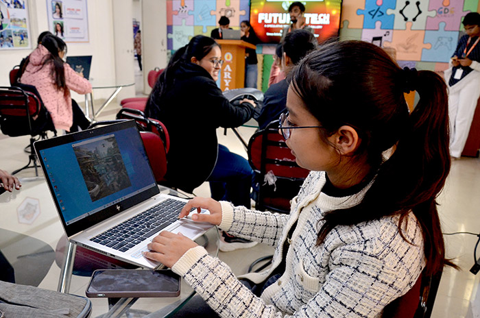 The competition celebrated young minds shaping tomorrow’s world through creativity and research. Mann Kothari (B.Tech AI & DS, 1st Year) secured the 1st Prize, while Janvi (B.Tech AI & DS, 1st Year) achieved the 2nd Prize, marking a proud moment for the institute.