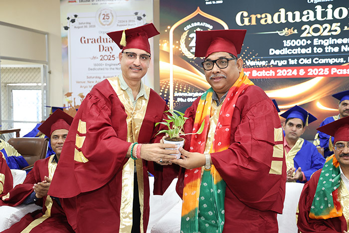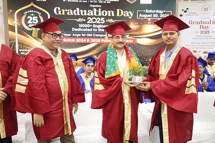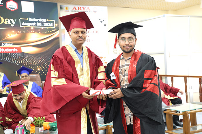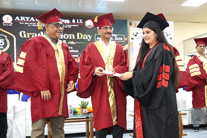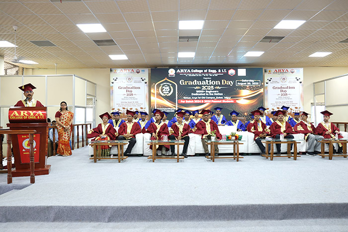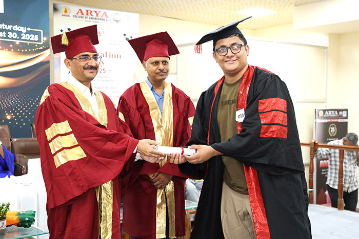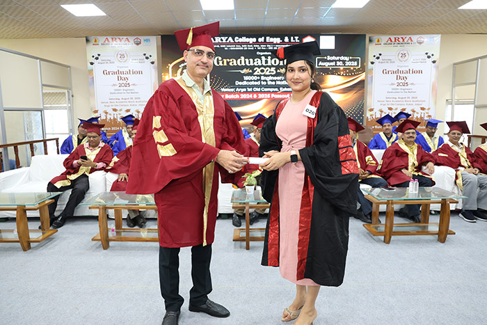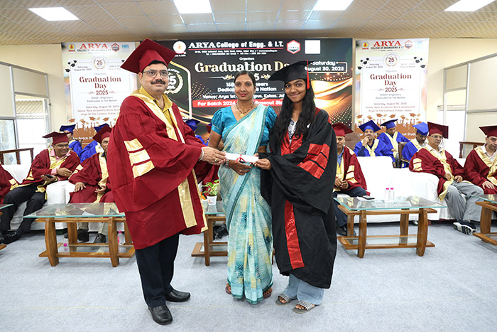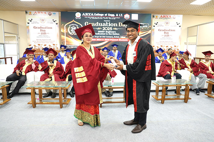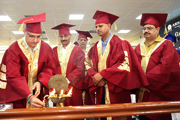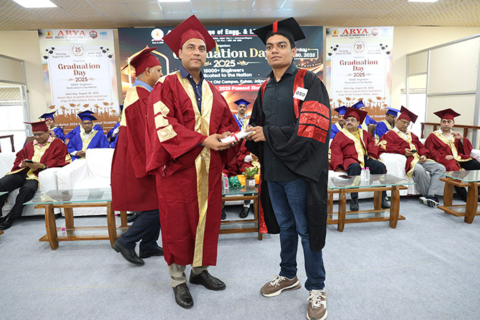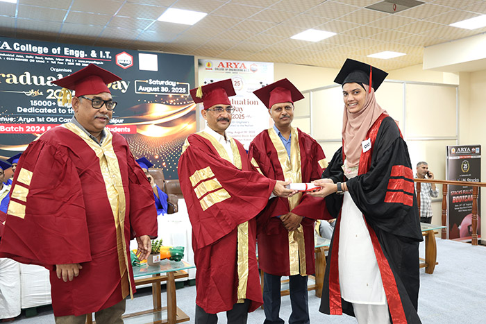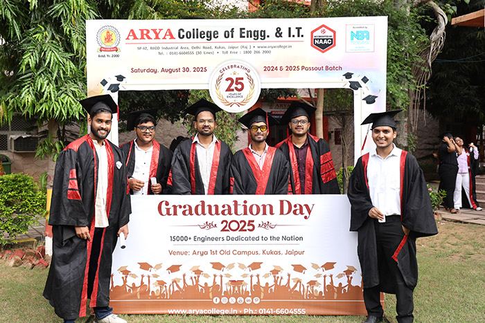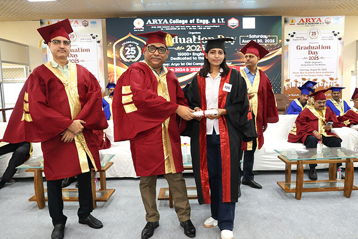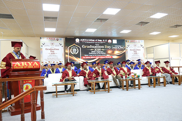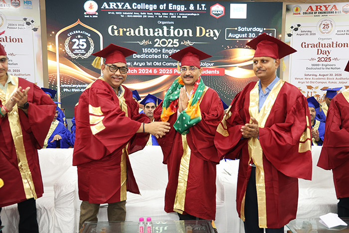 Arya College of Engineering & IT, Jaipur proudly celebrated the auspicious commencement of Graduation Day 2025 with the traditional Lighting of the Lamp Ceremony on 30th August 2025. This sacred ritual marked the beginning of the event and symbolized wisdom, knowledge, enlightenment, and the promise of new beginnings. It set the perfect tone for honoring the remarkable achievements of the graduating students from the 2024 and 2025 pass-out batches.