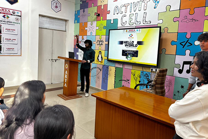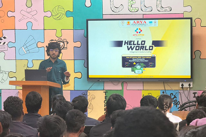 What an exceptional start for the Batch of 2026! The Arya Cipher Coding Club at Arya College of Engineering & IT, Jaipur successfully conducted its first interactive session, “Hello World,” warmly welcoming first-year students into the dynamic world of coding, technology, and innovation.