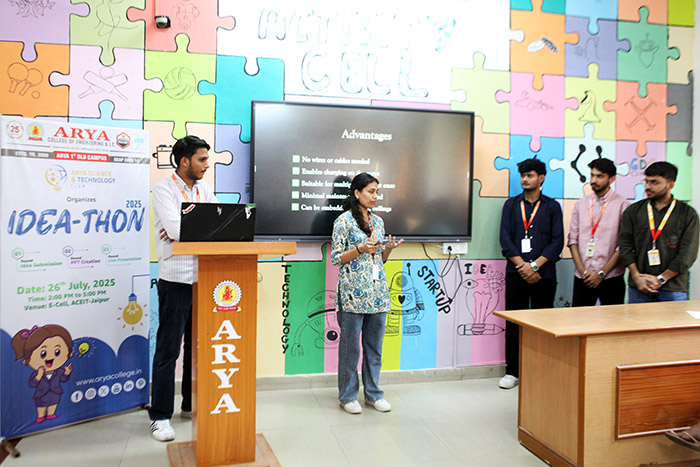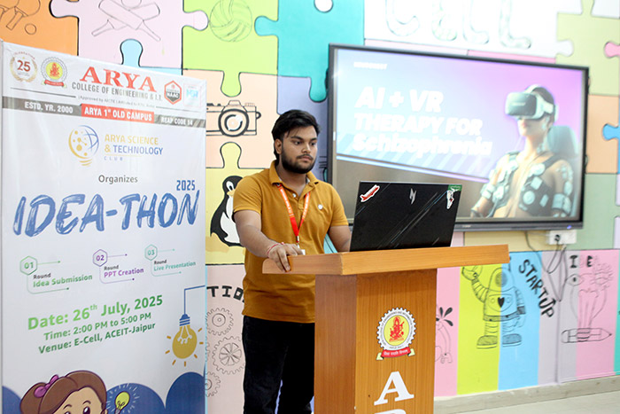 Arya Science & Technology Club successfully hosted IDEA-THON 2025 on 26th July 2025 at Arya 1st Old Campus, Jaipur. The event was a vibrant showcase of creativity, innovation, and youthful energy, drawing enthusiastic participation from students across disciplines. Structured in three dynamic rounds - Idea Submission, PPT Creation, and Live Presentation - the competition provided a comprehensive platform for students to bring their innovative ideas to life.