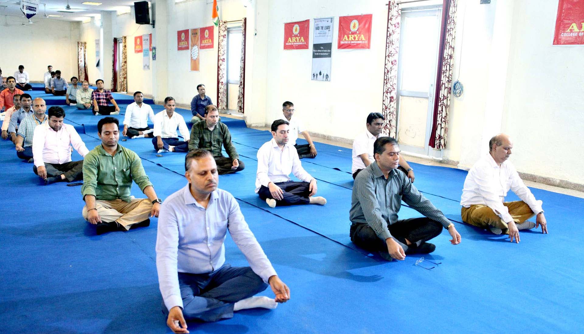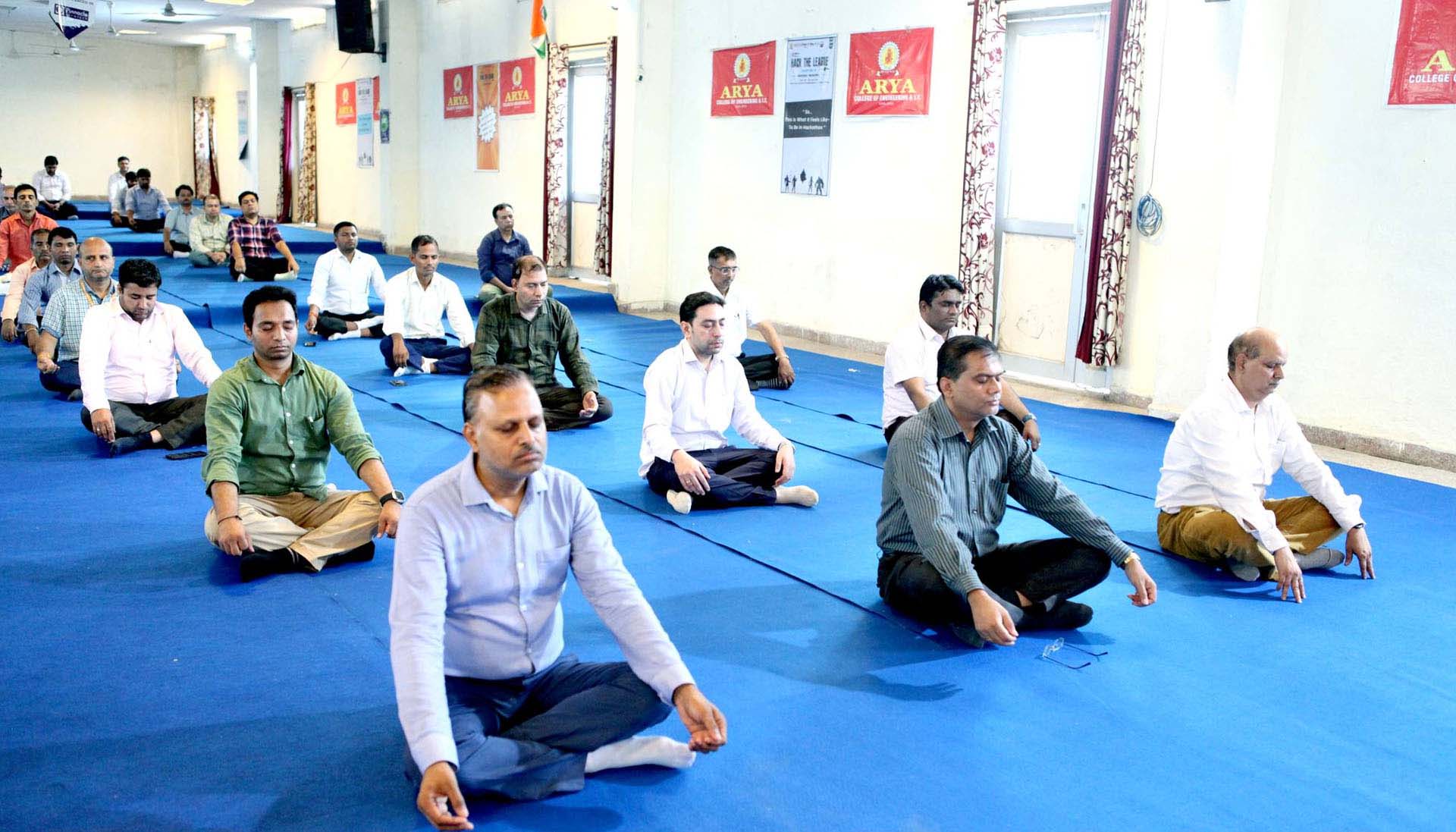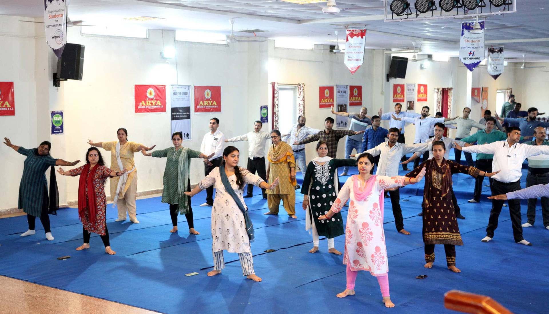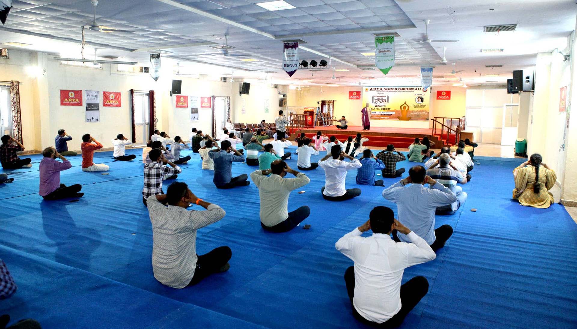 Arya College of Engineering & IT, Jaipur, celebrated the 10th International Day of Yoga with great enthusiasm on June 21, 2024. The event was led by Ms. Aditi Dadhich, a Certified Executive Coach and a distinguished faculty member of the Art of Living. Her expertise and guidance made the session highly engaging and insightful for all attendees.