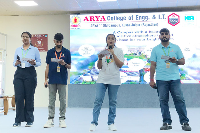 Arya College, Jaipur, through its Student Clubs, proudly welcomed the new batch of B.Tech students with an engaging introduction to the diverse Arya Clubs during the Induction Program 2025.