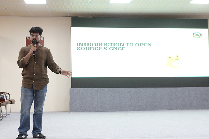 The workshop aimed to bridge the gap between academic learning and industry practices by giving students practical exposure to the latest trends in Cloud Computing, Open Source technologies, and DevOps. Students had the privilege of learning directly from industry experts – Mr. Ishan Jain (Software Engineer 2 – DevOps Engineer at Mastercard) and Mr. Manas Sharma (Developer Advocate at OpenObserve). Both speakers shared their rich experiences, covering key concepts, real-world applications, and career opportunities in the cloud and open-source ecosystem.