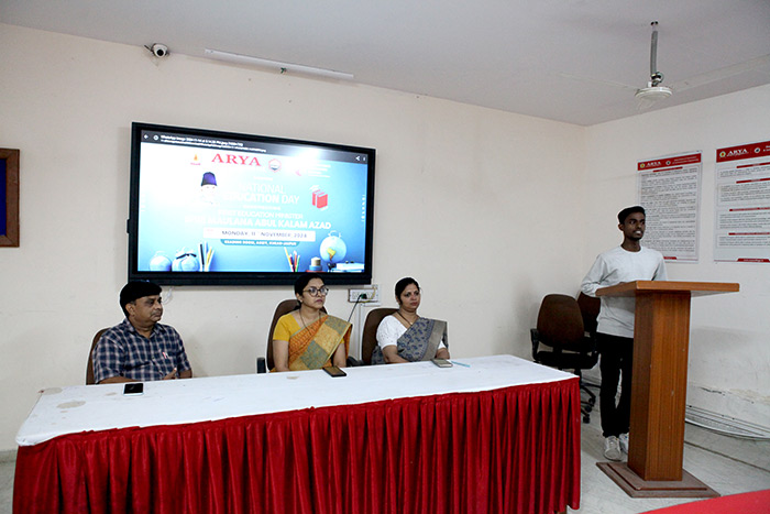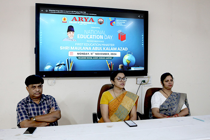The Institution's Innovation Council (IIC) at Arya College of Engineering & IT commemorated National Education Day on November 11, 2024, in honor of Shri Maulana Abul Kalam Azad, India’s first Education Minister. The event paid tribute to his immense contributions to shaping the Indian education system and emphasized the transformative power of education as a catalyst for empowerment and innovation.