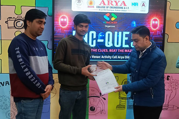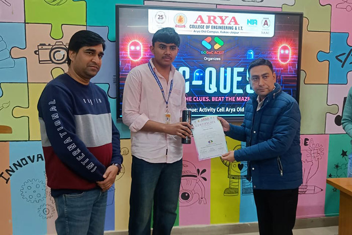 GDG ACEIT Club at Arya College of Engineering & I.T., Jaipur, successfully organized PAC-QUEST on 7th February 2026, an exciting solo treasure hunt designed especially for tech enthusiasts. The event pushed participants to their limits through a series of cryptic clues, logical challenges, and digital navigation tasks that tested their analytical thinking, speed, and problem-solving skills. Students demonstrated sharp intellect and smart strategies as they raced against time to decode puzzles and navigate through the challenge maze. The competitive atmosphere kept the energy high throughout the event.