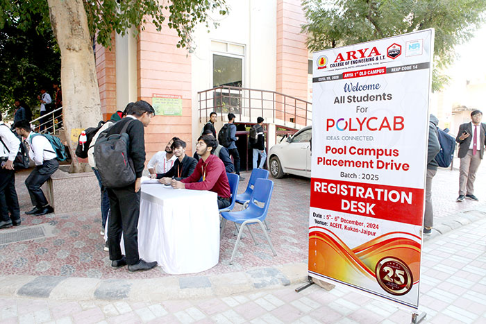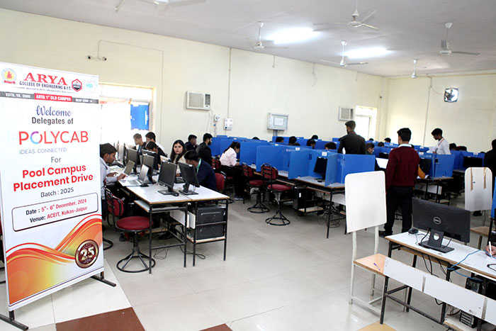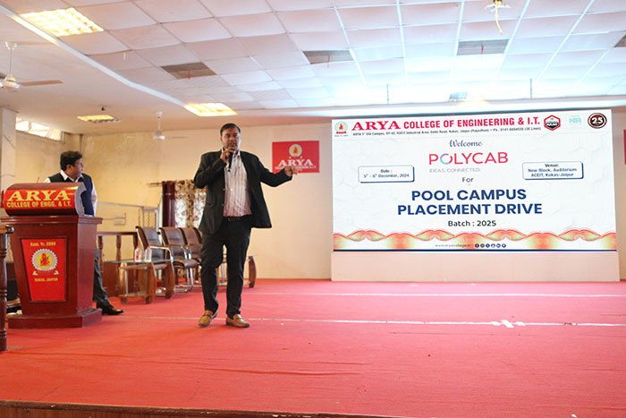 Arya College, Jaipur, successfully conducted a Pool Campus Placement Drive for Polycab on the 5th and 6th of December, 2024. The event was exclusively organized for the Batch of 2025, attracting enthusiastic participation from students across multiple colleges and universities.