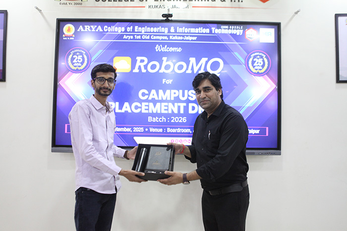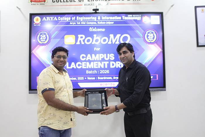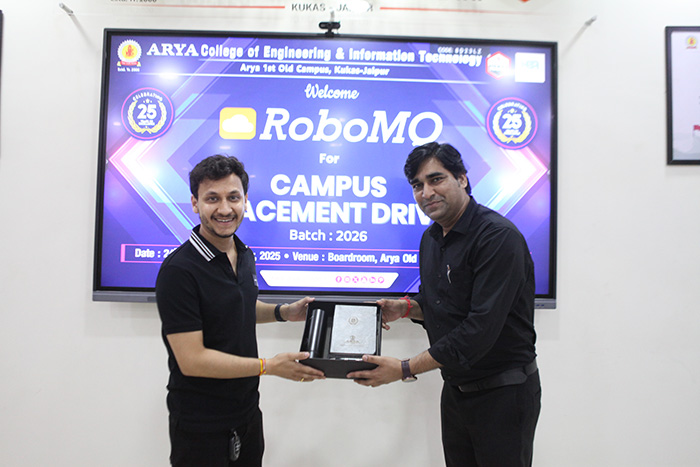 Arya College of Engineering & IT is delighted to welcome RoboMQ to our campus for the placement drive for the Batch of 2026 on 24th September 2025. This initiative marks an important milestone in providing our students with opportunities to begin their professional journey with one of the leading organizations in the field of digital transformation and integrated business processes.