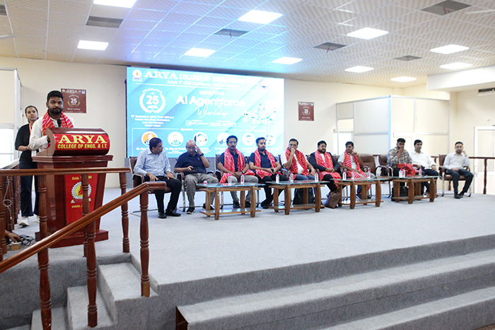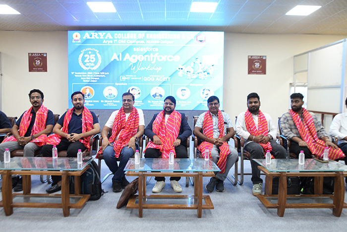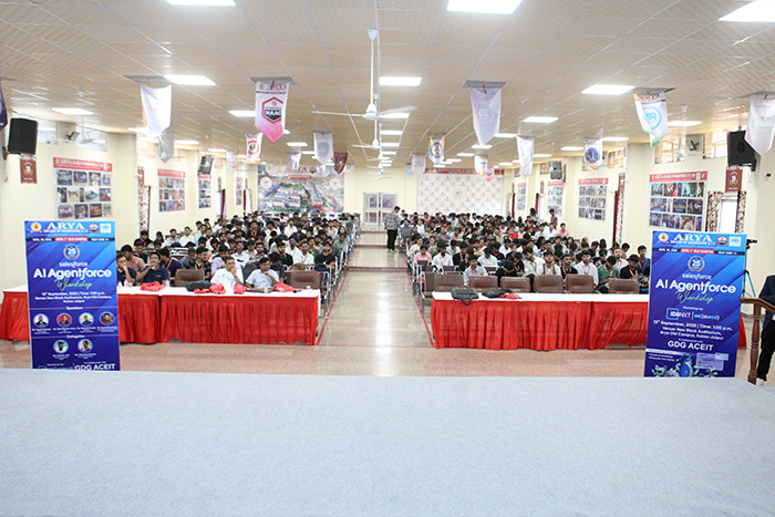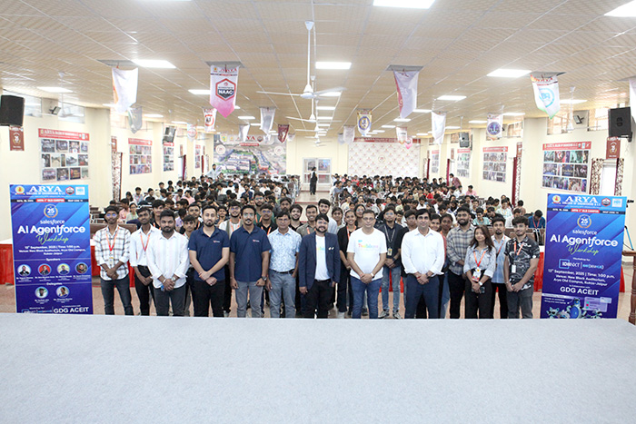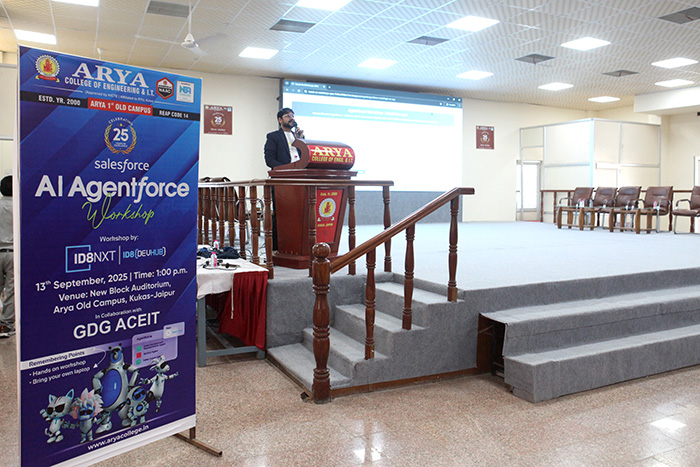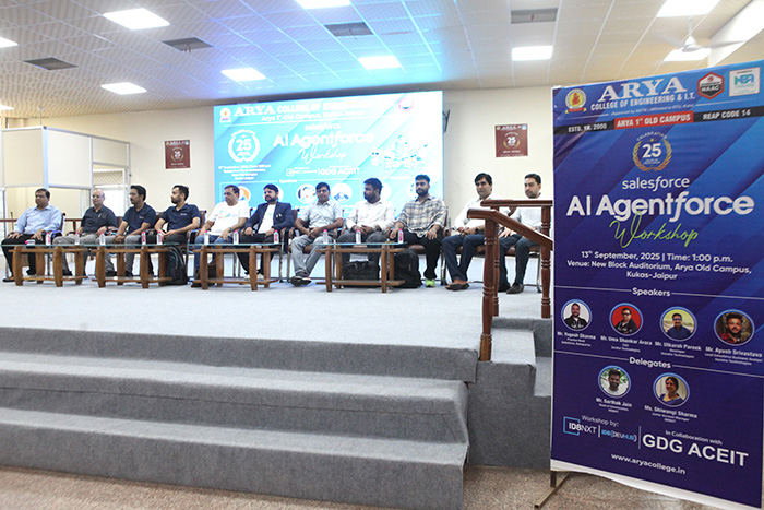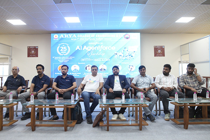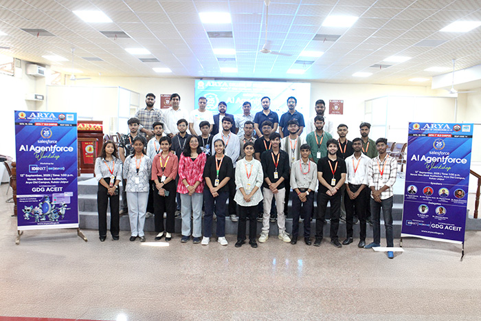 Arya College of Engineering & IT proudly hosted the Salesforce AI Agentforce Workshop on 13th September 2025, powered by GDG ACEIT in collaboration with ID8NXT and ID8DEVHUB. The workshop provided students with an incredible opportunity to gain hands-on experience in exploring the transformative world of AI-powered automation. Through engaging sessions and live demonstrations, participants were able to understand how artificial intelligence is reshaping industries and driving future innovations.