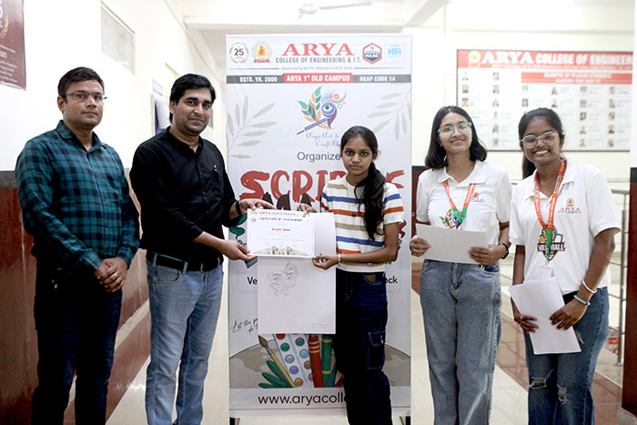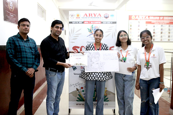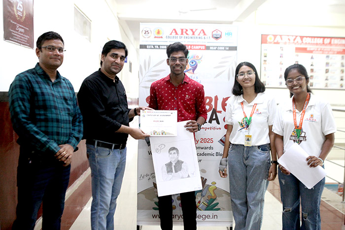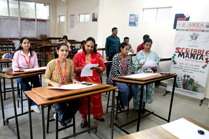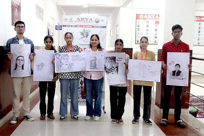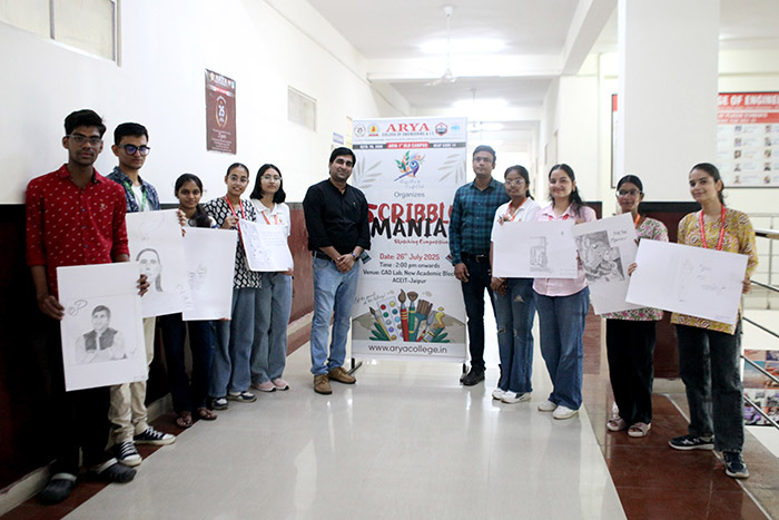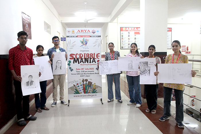 The Arya Art & Craft Club at Arya College of Engineering & IT, Jaipur, successfully organized Scribble Mania – The Sketching Competition on Saturday, 26th July 2025. The event served as a vibrant platform for students to unleash their imagination and artistic expression through sketching. With themes ranging from abstract concepts to impactful illustrations, the competition witnessed an impressive display of creativity, technique, and personal interpretation.