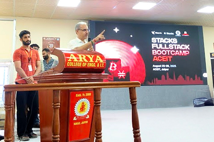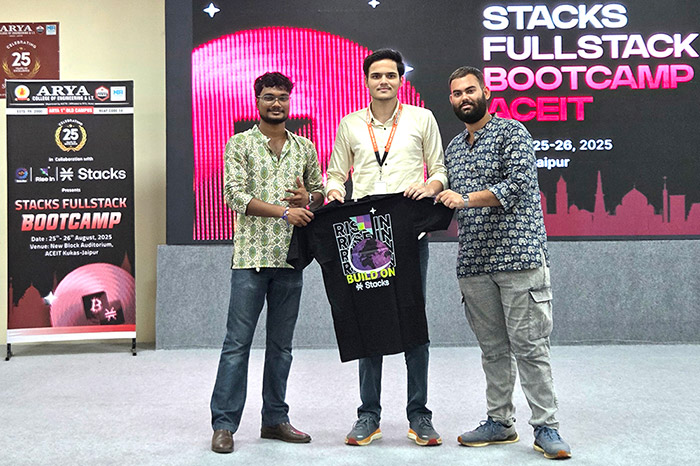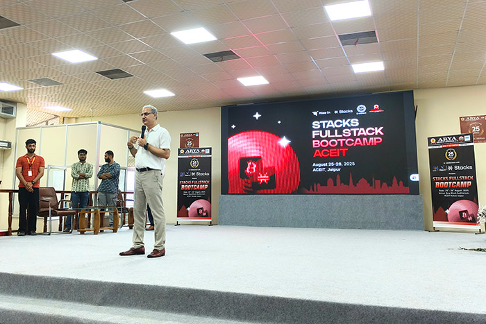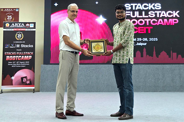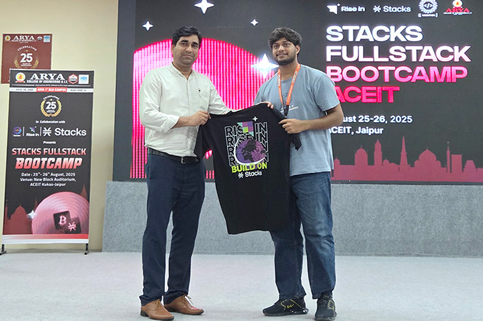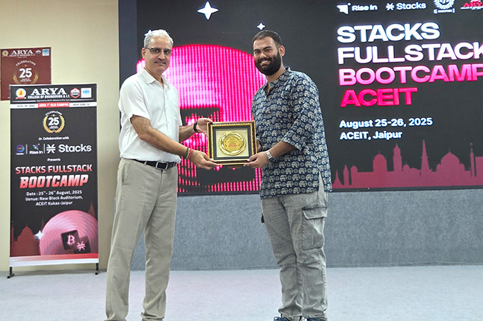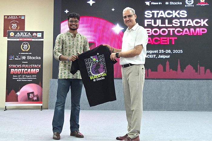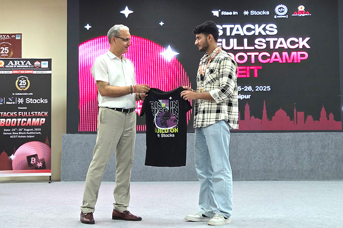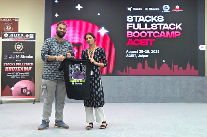 The Arya Hackathon Club, in collaboration with RiseIn, successfully hosted the Stacks Fullstack Bootcamp on 25th–26th August 2025 at Arya College of Engineering & IT, Jaipur.
