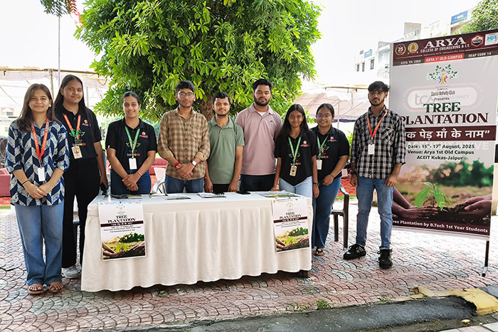 The Arya Social Activity Club at Arya College, Jaipur, successfully organized a noble and inspiring Tree Plantation Drive from 15th to 17th August 2025. The initiative witnessed enthusiastic participation from B.Tech 1st Year students, who, along with their families, came together to contribute towards a greener and healthier environment.