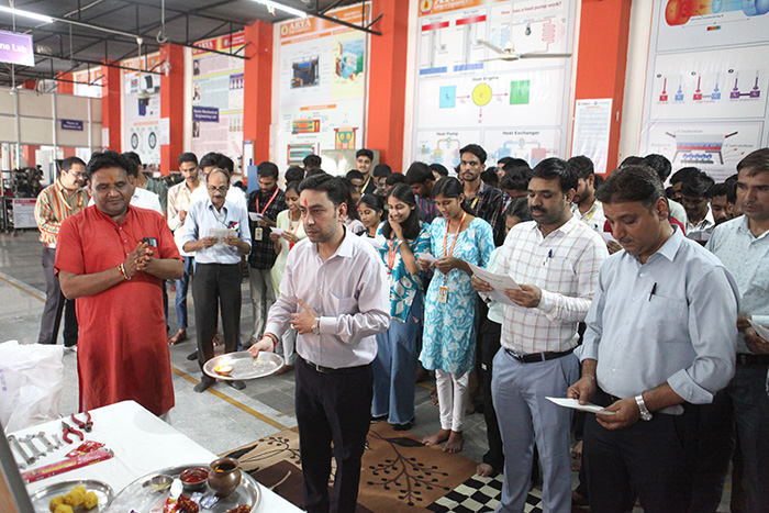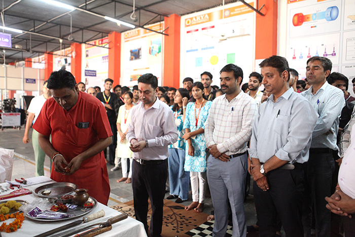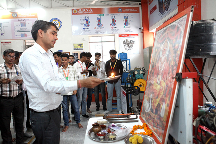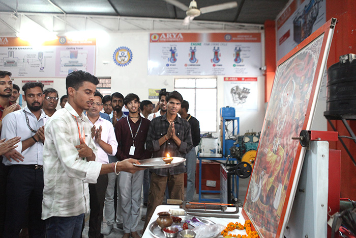 On 17th September 2025, Arya College of Engineering & IT, Jaipur, joyfully celebrated Vishwakarma Puja, dedicated to Lord Vishwakarma, the divine architect and engineer of the universe. The day brought together faculty, staff, and students in a spirit of devotion and gratitude. Traditional rituals and prayers were performed to seek blessings for creativity, innovation, and prosperity in all academic and professional endeavors. The event reflected the deep respect for Lord Vishwakarma’s contributions to design, architecture, and engineering excellence.