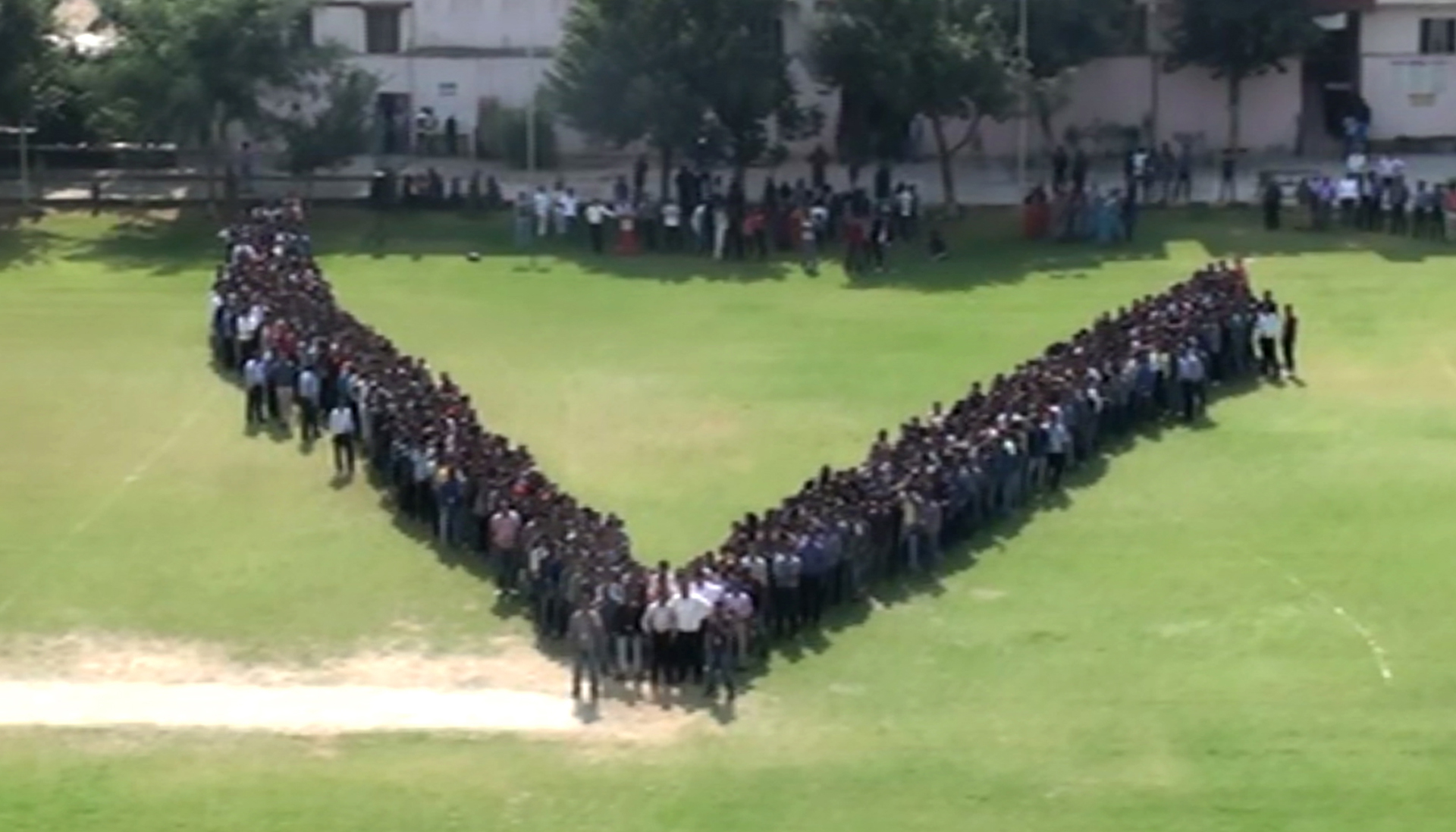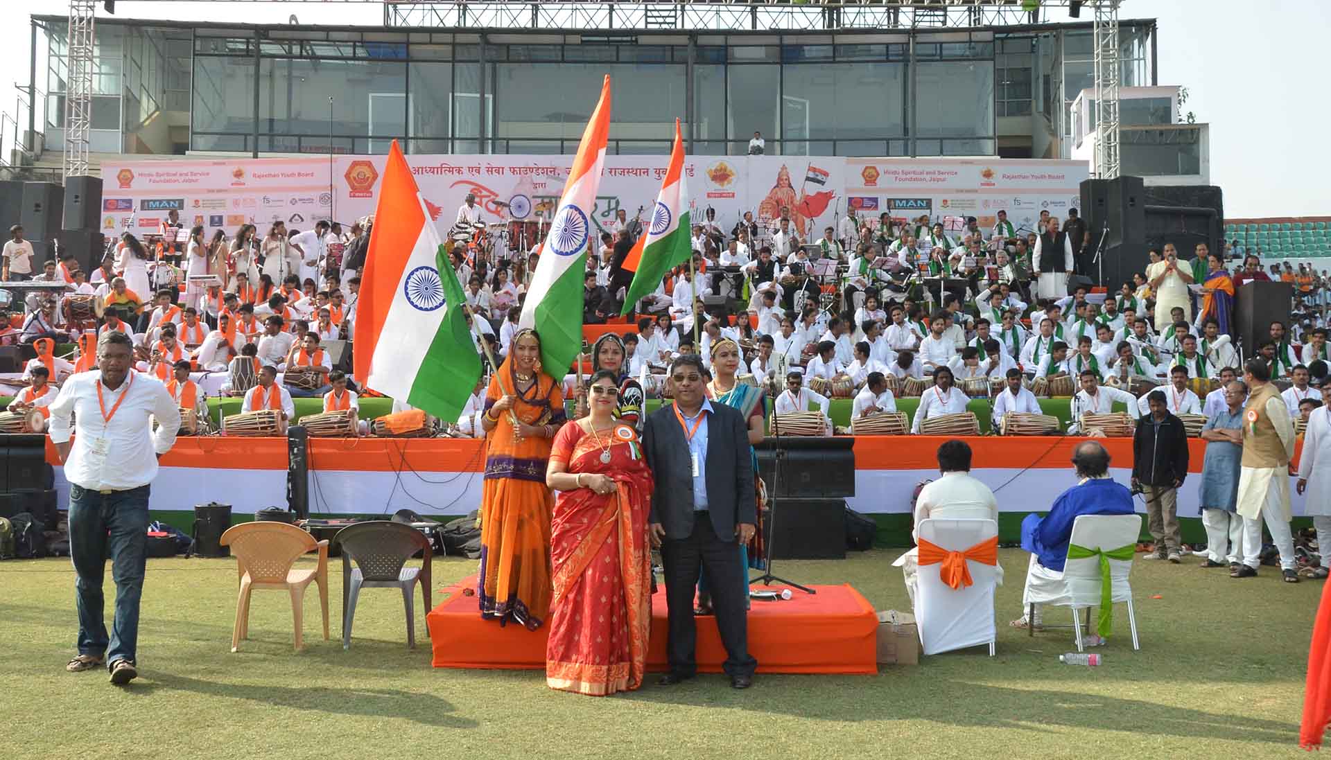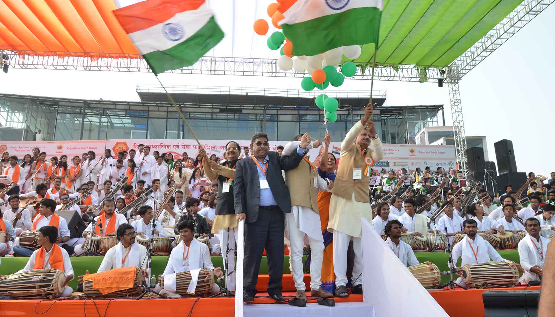 At Arya College of Engineering and IT, Jaipur, around 2,500 students made history by singing and reciting the national song, Vande Mataram, and chanting Bharat Mata Ki Jai in unison during the "Voice for Unity" event held on the college grounds. The students gathered in a V-shaped formation to symbolize unity and patriotism.