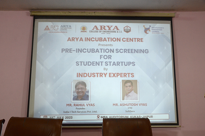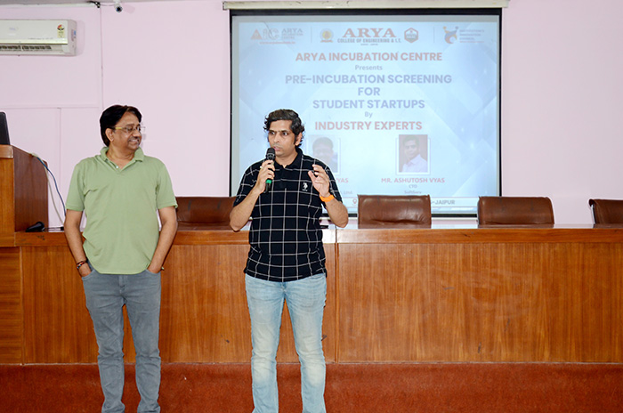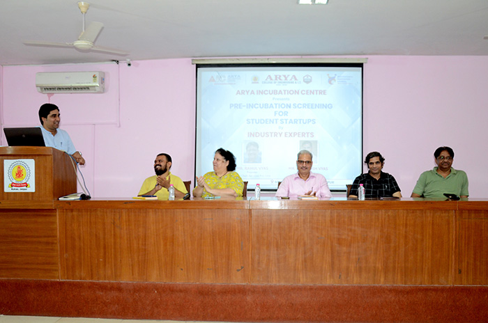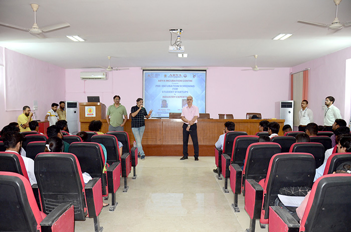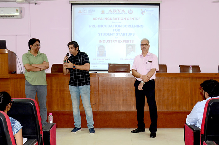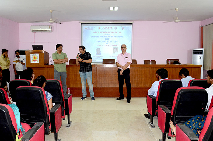 Arya Incubation Centre organized a series of insightful pre-incubation screening sessions at Arya 1st Old Campus. During this session, distinguished speakers Mr. Rahul Vyas from India I Tech and Mr. Ashutosh Vyas from Soft Serve takes a session on the value of pre-incubation for students and how to Conceptualize a successful journey from idea to start-up success. Dr. Akhil Pandey, Piyush Sharma and Winfred Crawford also provided support for the session, who generously contributed their expertise and guidance to the attendees. The Arya Incubation Centre aims to foster a culture of innovation and entrepreneurship among students, and these pre-incubation screening sessions were a significant step towards achieving that goal.