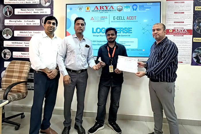 E-Cell ACEIT successfully organized LOGOVERSE on 6th September 2025 at Arya College of Engineering & IT, where students got an exciting opportunity to design their own startup logos using Google Gemini AI. Participants showcased their creativity, posted their innovative logo designs on Instagram, and competed for amazing prizes including Google Ambassador Stickers, Certificates & Social Media Spotlight. This event was a perfect blend of creativity, innovation, and technology, empowering students to think like entrepreneurs and design impactful brand identities for their ideas.