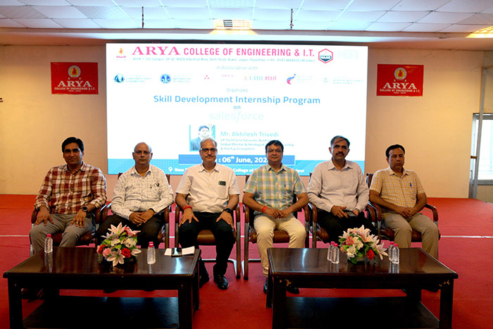 Arya College of Engineering & IT organized a Skill Development Program on Salesforce, 6th June 2024, led by Mr. Akhilesh Trivedi, VP Sales at TechForce Services, Australia. The session provided students with insights into Salesforce functionalities, customization, and integration, enhancing their industry-relevant skills. Mr. Trivedi's expertise and interactive approach offered valuable career guidance and practical knowledge, aligning with Arya College's commitment to preparing students for successful careers in technology.